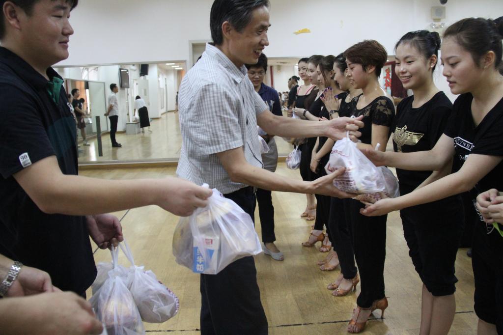 陈晓峰观看了同学们的排练情况,近20多天日夜刻苦训练给予了同学们很大的肯定,并提出了殷切希望,希望同学们抓住大艺展这个平台,提升专业水平,展示出绿瓦学子的风采。期间还与为此次大艺展付出辛勤劳动的指导老师们进行了亲切的交谈,感谢老师同学们的无私奉献。