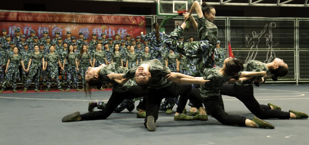 四连的《精忠报国》、八连的《红星闪闪》,七连的《歌唱祖国》..... 各连队排成纵队,穿着整齐的军装,在铿锵口令中步履坚定地走上舞台,用歌声表达心中对党和祖国的热爱。各连队各出奇招,武术招式硬朗,气壮山河;刀棍苍劲,势如破竹;舞姿健美,英姿飒爽;体操流畅,行云流水;军鼓点点,催人奋起;手语无声,传递大爱。仪仗队一曲《当祖国召唤的时候》歌喉嘹亮,展现出了先锋队的威武雄壮。女生连队巾帼不让须眉,一曲《军港之夜》搭配舞编姑娘娇美而不娇弱的舞姿博得现场阵阵掌声,殷辞恳切的《国家》唤起人们心中的拳拳赤子心,让人落泪动容。