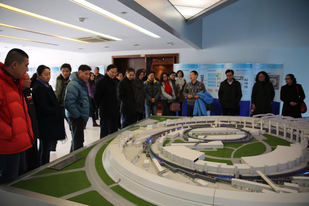 本网讯 12月18日下午,我校组织中层干部赴张江高科技园区参观上海光源国家科学中心。党委书记戴健,党委副书记、副院长陈晓峰,党委副书记、纪委书记詹萌,党委副书记王玉林,副院长平杰以及中层干部参加了此次活动。此次参观学习是下半年党委中心组和中层干部理论学习计划的内容之一。参观活动由上海光源副总工程师黄宇营研究员作详细讲解。