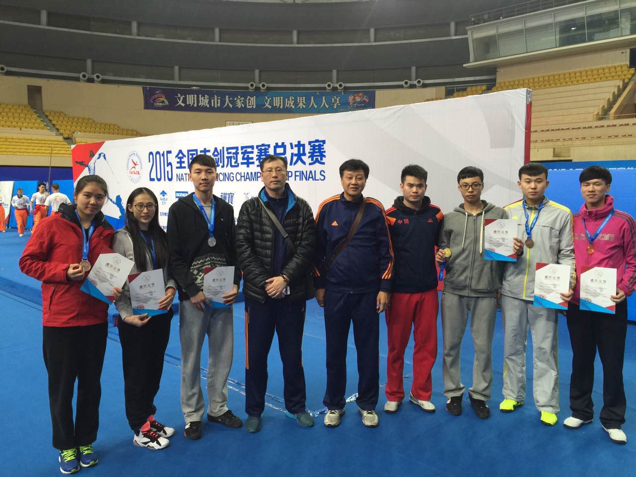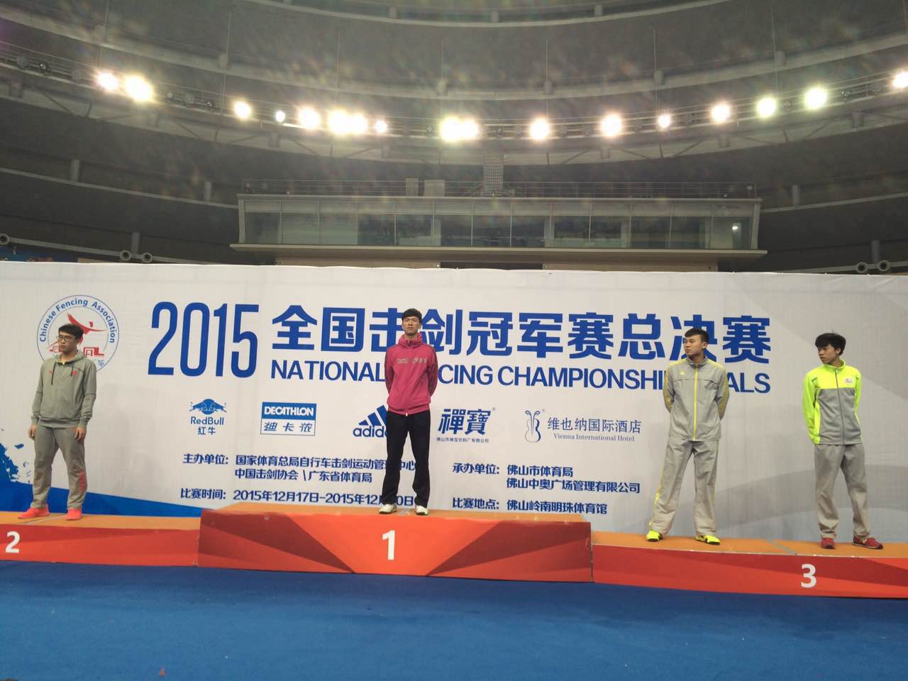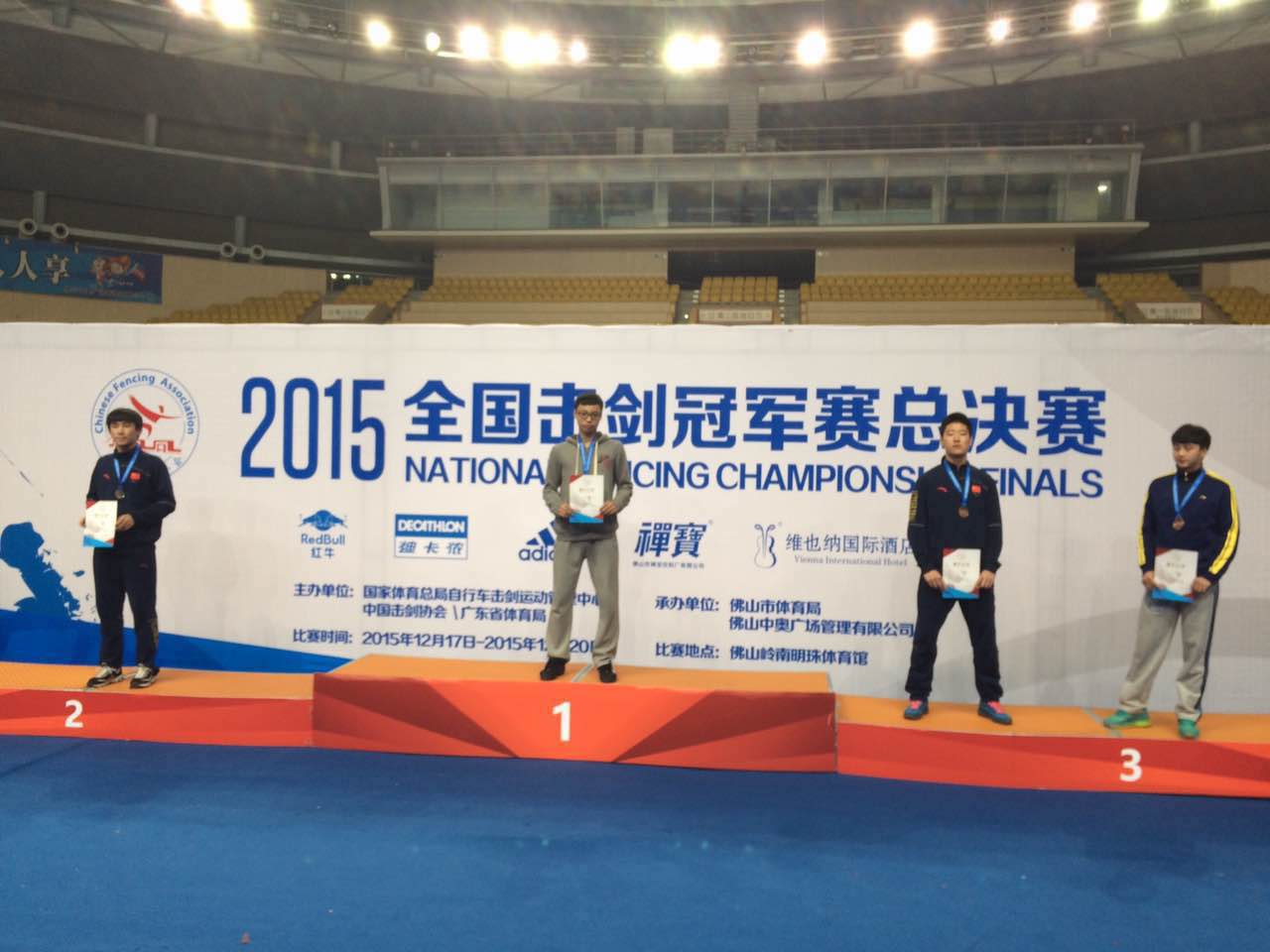 本网讯 2015年全国击剑冠军赛总决赛于2015年12月17日-20日在广东省佛山市岭南明珠体育馆主馆举行,剑客们经过四天的精彩角逐,从来自全国各省市击剑队、俱乐部以及高校的56支队伍共计457名选手中,产生了青年组、少年组、儿童组、大学生组和老将组的各组别优胜者。