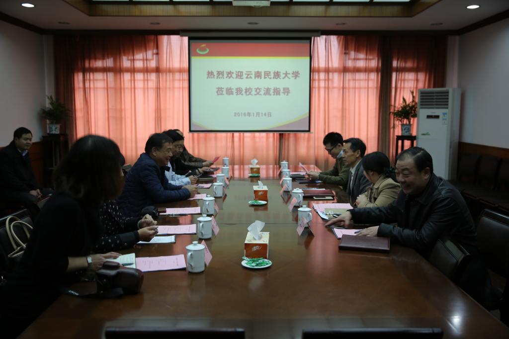 代表团李辉副书记、李炳泽副校长简单介绍了云南民族大学的办学特色和发展思路,并希望能与我校在多领域继续开展积极有效的合作。
