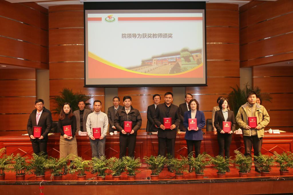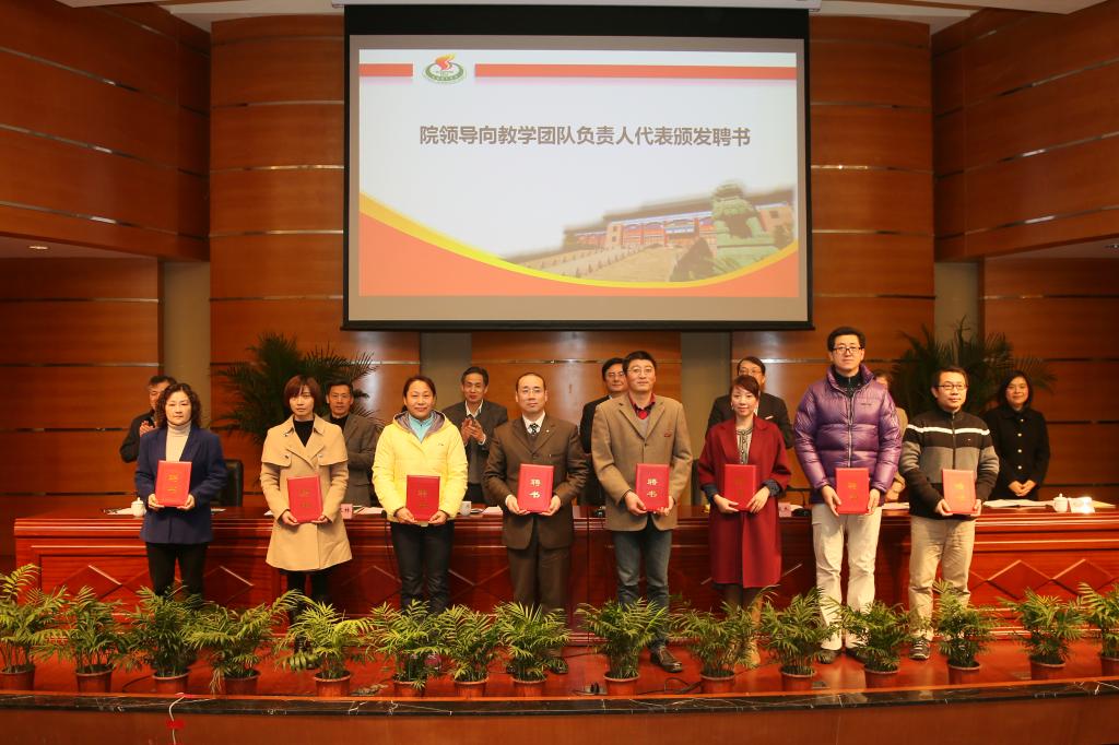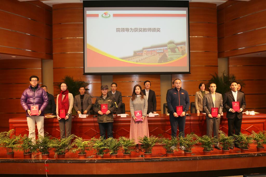 党委书记戴健宣读了2015年度我校获批市级质量工程教师名单,党委副书记、副院长陈晓峰宣读了本科教学竞赛获奖教师名单,党委副书记王玉林宣读了优秀教练员名单,会上对获奖教师进行了表彰,院领导向本科教学团队负责人代表颁发了聘书。