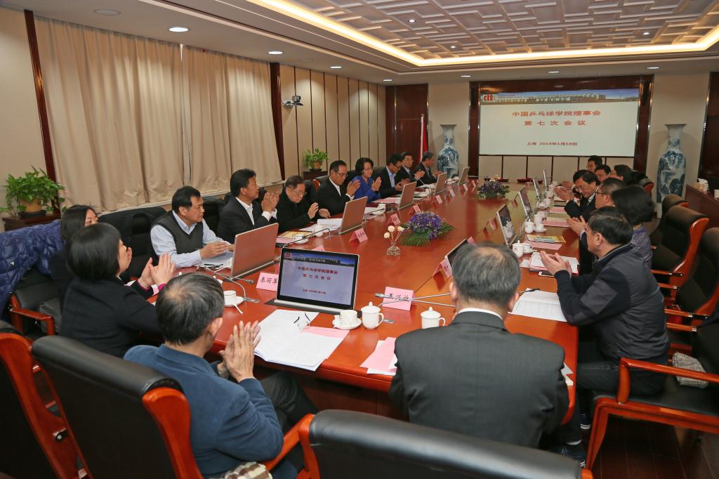 本网讯 1月18日,中国乒乓球学院理事会第七次会议在上海隆重举行,国家体育总局副局长、名誉理事长蔡振华,上海市人民政府副市长、中国乒乓球学院理事会名誉理事长翁铁慧,原国家体育运动委员会副主任、中国乒乓球学院名誉院长徐寅生出席了会议。上海体育学院党委书记戴健致欢迎辞。会议由国家体育总局乒羽中心主任、中国乒乓球学院理事会理事长刘晓农主持。