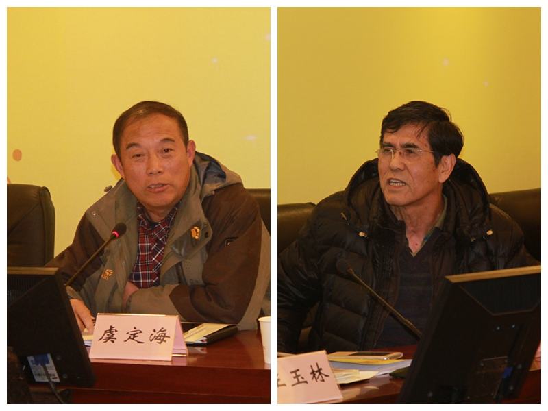 虞定海教授和邱丕相教授作为武术学院顾问,从教师发展、人才培养等方面相关就武术学院的发展方向和学科建设工作,建议武术学院教职员工要立足好本职工作,增强学科的对接与发展,对接高峰高原项目,促进学风建设,创建一批武术艺术品牌,继续做好大师工作室工作,推进武术博物馆的持续发展。