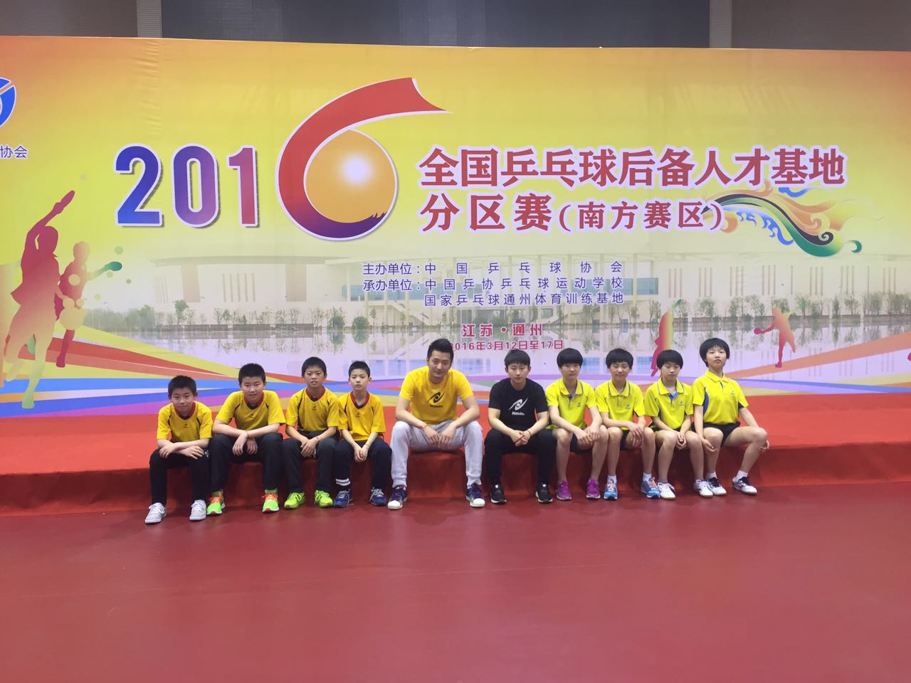 本网讯3月14-17日在江苏南通开沙岛国家乒乓球训练基地举行的2016年全国后人才基地南方赛区的比赛上传来喜讯:中乒院少年班学员在比赛中表现出了良好的精神面貌,再创佳绩,由陈熠、邱泓珺、楚涵雯、胡漪澄组成的女队,顽强拼搏、一路过关斩将勇夺团体冠军,而男子方面高申童、赵欣鹏、禹福玮、陈沫含、刘睿一组成的男队不畏强敌、团结一心,在最后的团体决赛中2比3惜败,取得了团体第二名的好成绩。单打方面,女队更是战果辉煌,陈熠发挥出色,在决赛1比3落后的情况下,毫不气馁、放手一博,连扳3局,勇夺女单冠军,邱泓珺、胡漪澄、楚涵雯也表现不俗,分别取得单打第三名、第四名和第八名的好成绩。
