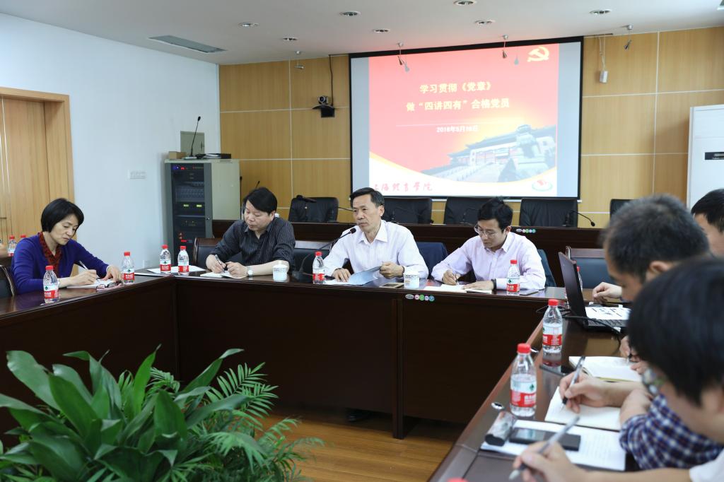 同时,引导全体党员立足岗位,践行“四讲四有”党员标准,做到牢固树立党章意识;自觉践行“四讲四有”标准;自觉加强党性锻炼;立足于本职工作,希望全体党员一起努力,学习、遵守党章,践行“四讲四有”标准,创造一流工作业绩,为建设世界一流体育大学而努力奋斗!