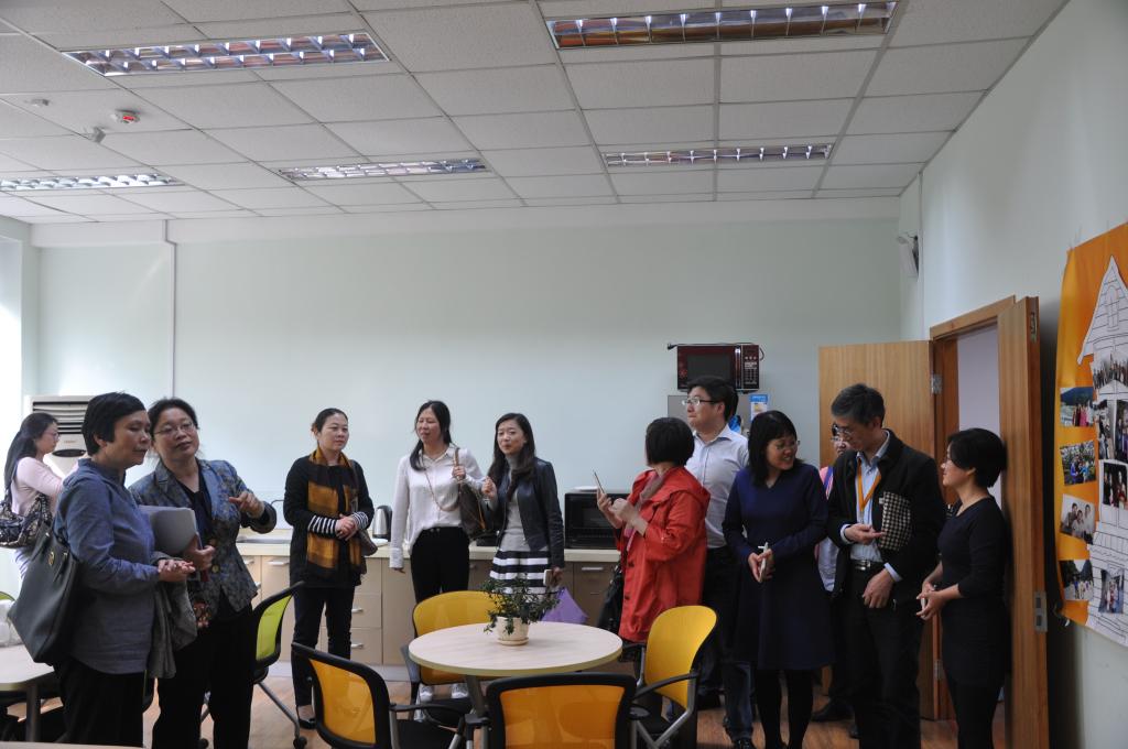 在顾蔚老师陪同下,我院工会干部参观了上海外国语大学“妇女之家”、基层部门图书馆的“妇女小家”和“妈咪小屋”,每个房间经过精心营造,温馨周到的环境布置令参观者体验到设计者的热心和爱心,已成为教职工温馨的港湾和舒心的小天地。在上外工会专用橱窗栏前,三十幅宣传展板图文并茂,生动展示了上海外国语大学丰富多彩的教职工文体协会活动、工会小家和妇女之家建设成果,综合展示了上外工会近年来在上海乃至全国工会系统所取得的丰硕成绩。上外虹口校区面积比我院更小,经过多年不懈努力,能够在每个二级工会都结合学科专业特点和教职工需求,设立了各具特色的工会小家和妇女之家,其工作推动力度令参观者由衷感佩。