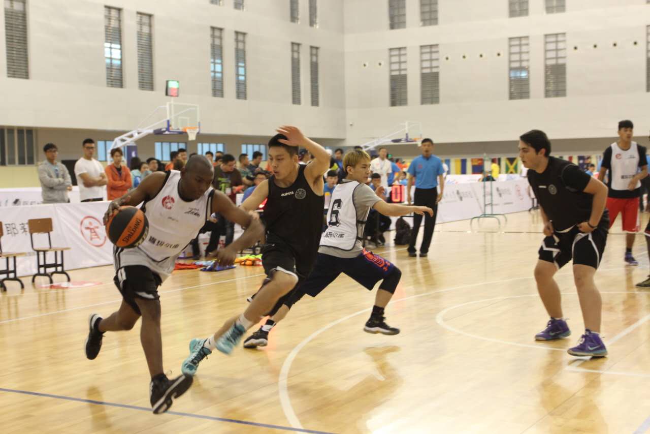 20日,竞争最为激烈的3对3篮球赛在扬州大学(扬子津校区)体育馆拉开战幕。我校与厦门大学、华南理工大学、安徽大学、浙江工业大学以及武汉大学分在B组。在上午进行的五场小组赛中我校代表队实力超群,五战五胜,轻松晋级淘汰赛,然而我校代表队主力前锋朱利安由于疲劳累积加上用力过猛,大腿出现伤情,这也使得下午的每一场比赛都充满了变数。在中午在酒店稍作调整之后淘汰赛环节即刻进行,我校代表队首先迎战的是C组第二名安徽医科大学,由于双方实力差距较大,比赛早早地失去了悬念,我校代表队顺利挺进了半决赛。半决赛对手是浙江赛区头名浙江科技学院,对手实力出众,不容小觑。双方在开局阶段呈现胶着态势,比分差距一时间无法拉开。随着比赛的进行,我校代表队许志超连连攻击对方内线造成杀伤,朱利安和钟方凌在外线也频频发炮,比分差距被逐渐拉开,最终赢得胜利与上海赛区的老对手东华大学会师决赛。然而进入决赛的喜悦并没有维持多久,朱利安伤势的加重使得代表队的每个人都忧心忡忡,队员们紧急采用冰敷等手段试图减轻朱利安的痛苦,领队钮亭亭老师也从保护队员的角度出发试图劝说朱利安决赛休战。然而坚强的朱利安依然坚持着,用并不太流畅的中文说:“老师,我可以。”面对关键时刻无人可换的窘境,面对上海赛区曾经击败过的对手,三名队员拖着几乎打满所有七场比赛疲惫的身躯站上了决赛的场地。最终,我校代表队遗憾地输掉了决赛屈居亚军,但在现场每一位代表队成员心里他们都是当之无愧的冠军!