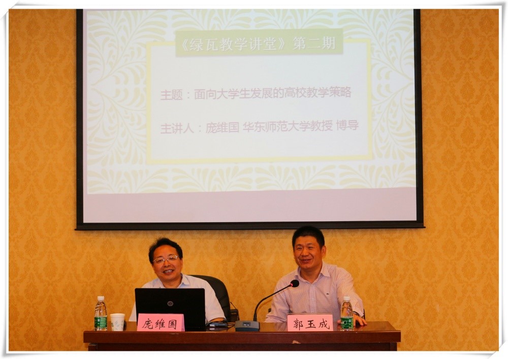 本网讯 6月2日,教师教学发展中心在体育教育训练学院1111报告厅举办“绿瓦教学讲堂”第二期,中心特邀华东师范大学心理与认知科学学院副院长、上海市心理学会秘书长庞维国教授作题为《基于大学生发展需求的课堂教学策略》专题报告,活动由教师教学发展中心常务副主任郭玉成教授主持,20余名中青年教师参加本次活动。