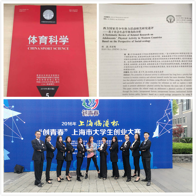 2、以“学研公社”为载体开展科创活动,休艺学院再创佳绩。不断创新活动形式,大力推进以主题探讨、经验分享、辅导培训及课题申报等多种活动内容,开展了教学讲座、“挑战杯”项目孵化等专项活动,为进一步提升学术科研水平和能力提供了平台。我院研究生党员陈翟鹿子作为《“星希望”自闭症儿童舞蹈治疗公益项目》负责人,带领团队成员获2016年“创青春”上海市大学生创业大赛金奖,并入围全国赛,俞剑鸣等的《业余体育赛事活动服务平台——赛福》获2016年“竞攀杯”上海体育学院课外学术科技作品竞赛三等奖。利用科创社团“学研公社”发展科创团队,开展学术交流活动,鼓励学术结合专业特色积极申报“竞攀杯”、“挑战杯”、“知行杯”等项目,不断增强学生竞争力。我国中文体育类顶级期刊《体育科学》于2016年第5期全文刊载了我院休艺学院体育人文社会学专业2014级在读硕士党员韩慧同学为第一作者的学术论文《西方国家青少年体力活动相关研究述评——基于社会生态学视角的分析》,再次彰显了休艺学院研究生过硬的学术能力和扎实的学术功底。