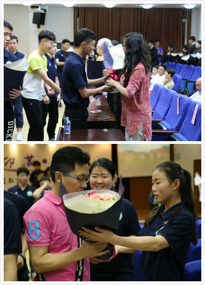 来自体操教学团队的陈旭晖老师作为教师代表的发言可谓情意至深。看着一张张熟悉的的脸庞,作为老师,她心中满是感动,是不舍,更是深深的骄傲。毕业生代表向在场所有老师送上鲜花以示感谢。