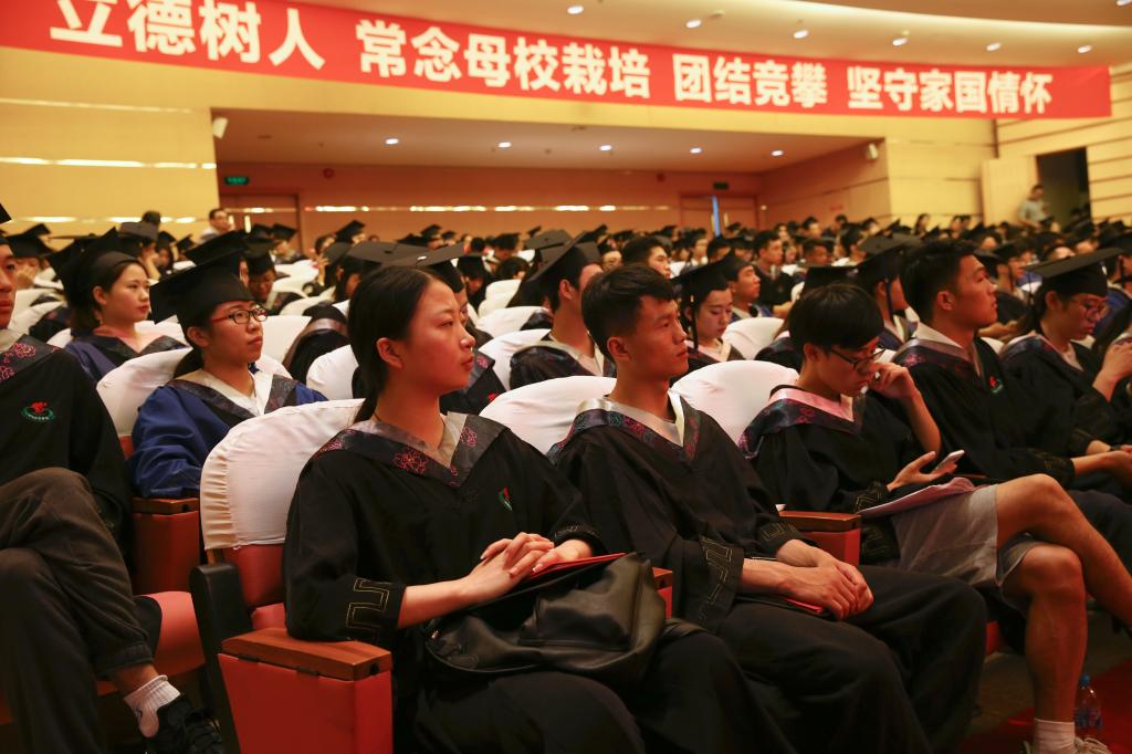 本网讯 6月23日上午,学院2016届学生毕业典礼在图文信息楼一楼报告厅隆重举行,党委书记戴健出席典礼,并代表学校接受毕业生赠送礼物。院长陈佩杰对全体毕业生致毕业寄语,以踏实的行动奋勇前行,永葆青春的梦想。党委副书记、副院长陈晓峰,党委副书记、纪委书记詹萌、党委副书记王玉林,副院长平杰、施之皓、毛丽娟、王兴放出席典礼。学校相关职能部门、中乒院、各二级学院负责人,导师代表、教师代表和家长代表等参加典礼。典礼由学院办公室主任杨玲主持。
