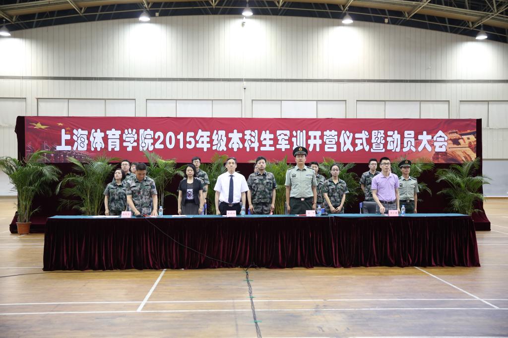 本网讯 “我们的队伍向太阳,脚踏着祖国的大地……”《中国人民解放军军歌》回荡在上海体育学院的上空,字字铿锵点燃同学们的热情。2016年6月26日上午9点,2015级本科生全部戎装列队,在综合馆内进行了上海体育学院2015年级本科生军训开营仪式暨动员大会。中国人民解放军73171部队高炮营副教导员汝甲,上海体育学院党委副书记、副院长、军训领导小组组长陈晓峰,上海体育学院学工部部长熊小健以及军训团主要干部出席大会。