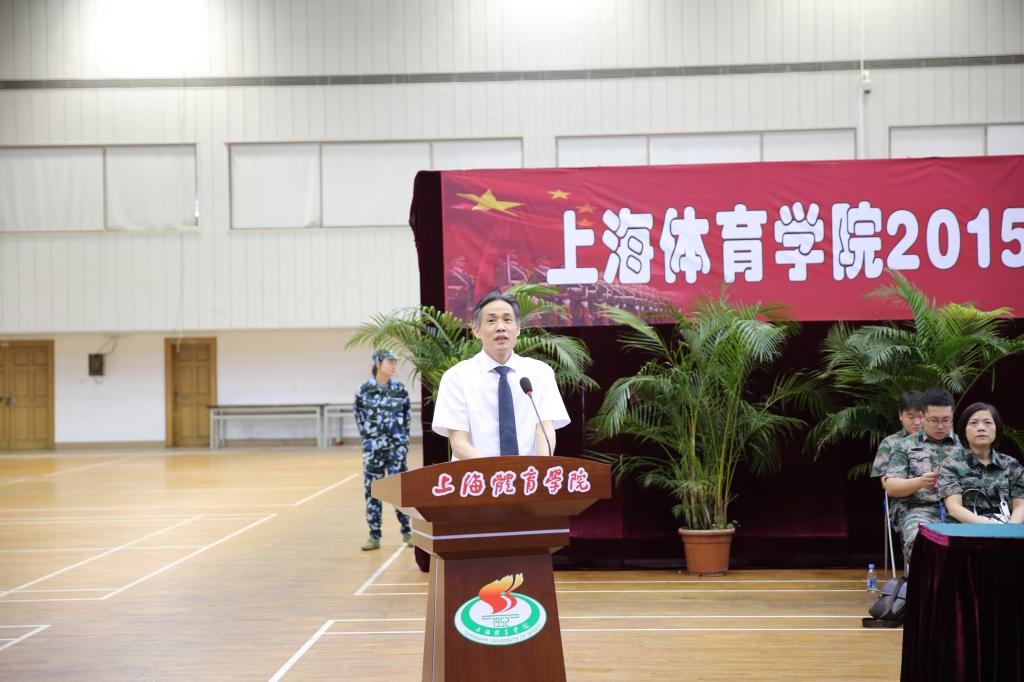 陈晓峰在讲话中回顾了上海体育学院与73171部队十多年来的深厚情谊,并向参训学生提出了希望和要求。他首先为在座的所有学生“点赞”,同学们整齐的坐姿展现了当代大学生的精神风貌。他强调,迷彩服意味着一份担当。尽管很多教官年龄很小,但他们身上有着铁的纪律、钢的意志和报国理想,我们应当向这些最可爱的人学习。同时,我们也应在保质保量完成军训任务的同时,将体育的价值通过军训与战士进行交流,将上海体育学院的特色发挥出来。最后,陈晓峰预祝本次军训工作圆满成功,并宣布开营仪式结束。