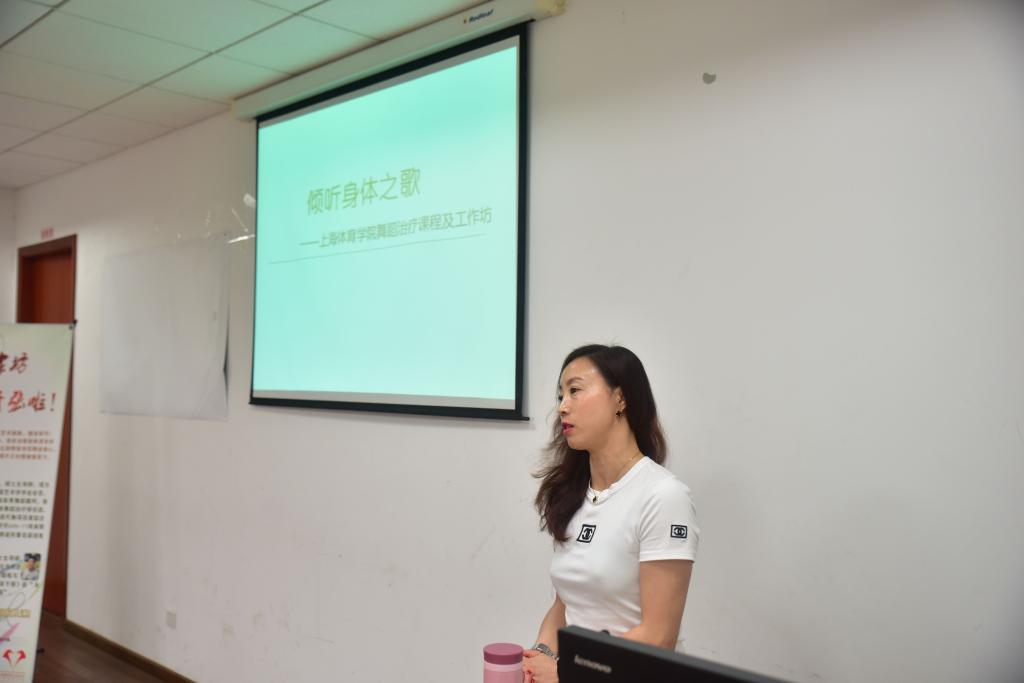 舞动心灵工作坊的主持教师——休闲与艺术学院马古兰丹姆副教授向各位来宾介绍了工作坊课程舞蹈治疗的内涵、形式、国内外发展现状以及我校开展该课程的情况。互动环节,丹姆老师耐心细致地解答了来宾提出的各种问题,得到来宾的赞誉。