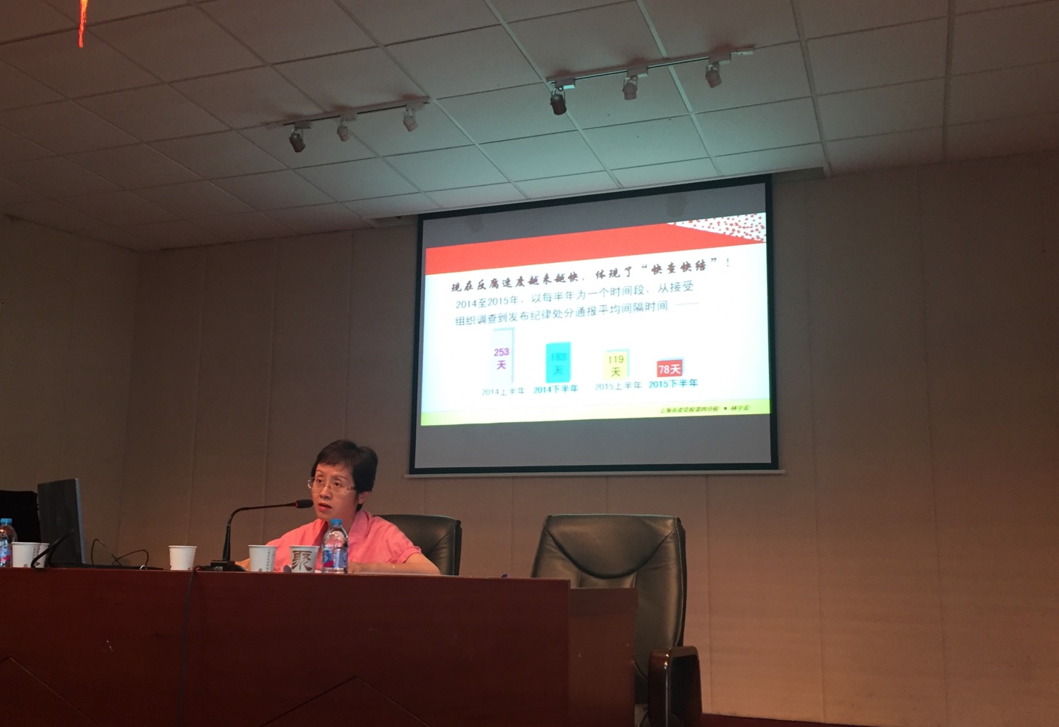 党课邀请上海市委党校第四分校林宇宏教授主讲。林教授以《严明党的政治纪律 严守党的政治规矩》为主题做了一个半小时的讲座。面对会场上满座的老党员,林教授发出了“想不到”的感慨,称赞不愧为老党员。林教授的报告讲了三个问题:一、把握政治纪律和政治规矩的内涵及特点;二、严明政治纪律和政治规矩的重要意义;三、严格遵守政治纪律和政治规矩的基本要求。报告从马列主义理论和习近平总书记系列讲话的高度上,论述了党的政治纪律和政治规矩,结合《中国共产党廉洁自律准则》《中国共产党纪律处分条例》,用“正面清单”与“负面清单”比喻“准则”与“条例”的关系,阐明自律与他律不同要求,通俗易懂,鲜活生动;从“大老虎”到“小苍蝇”,从饭桌上的“毕姥爷”到地铁车厢的“鸡爪妹”,从鲁班授徒到五人“分粥”,从李自成进京到两个“务必”,从延安的“黄克功”到“中国人过马路”,寓深刻的理论于谈古说今之中。大家聚精会神,听得津津有味,报告入耳入心,引人遐想,发人深思,令人警惕。真是:信手拈来皆“论据”,古今典故成文章。