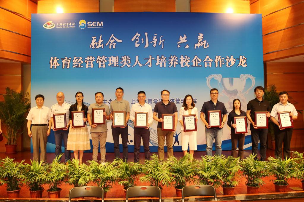 经济管理学院院长曹可强向东亚体育经纪公司总经理祁伟、虎扑体育副总裁须敏、乐视体育首席营销官强炜、盛力世家副总裁王婷等十余位企业代表颁发了职业发展委员会证书。并与参会的二十家企业代表共同签订了经济管理学院就业实习基地共建协议书。