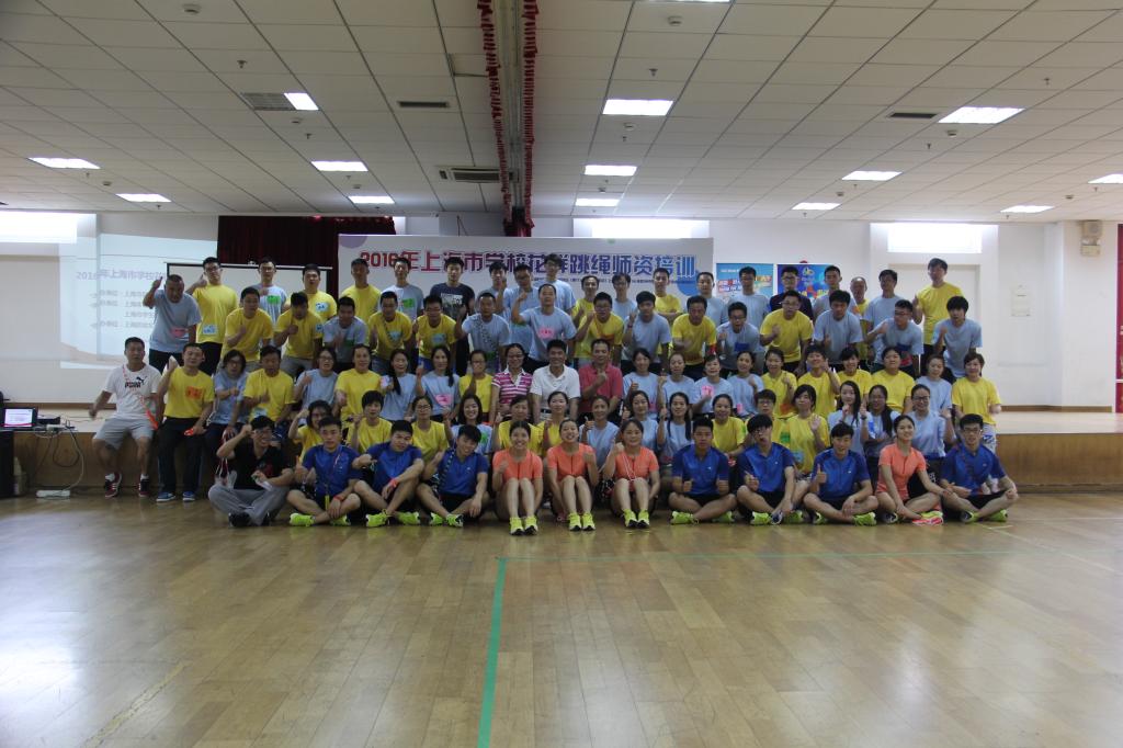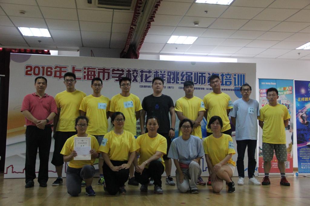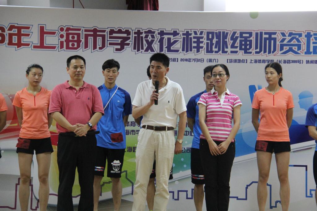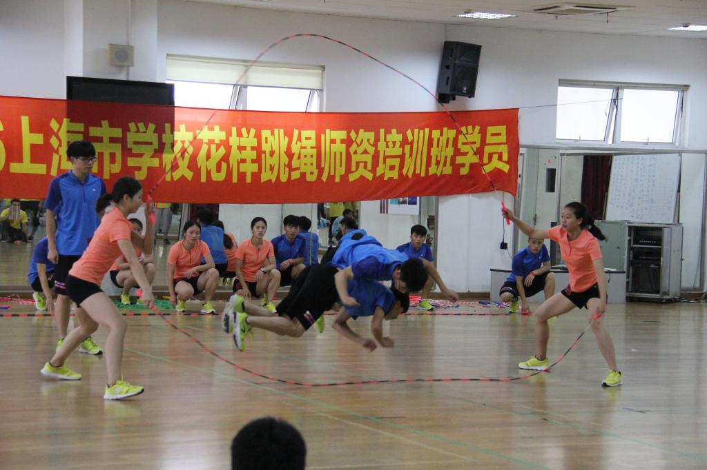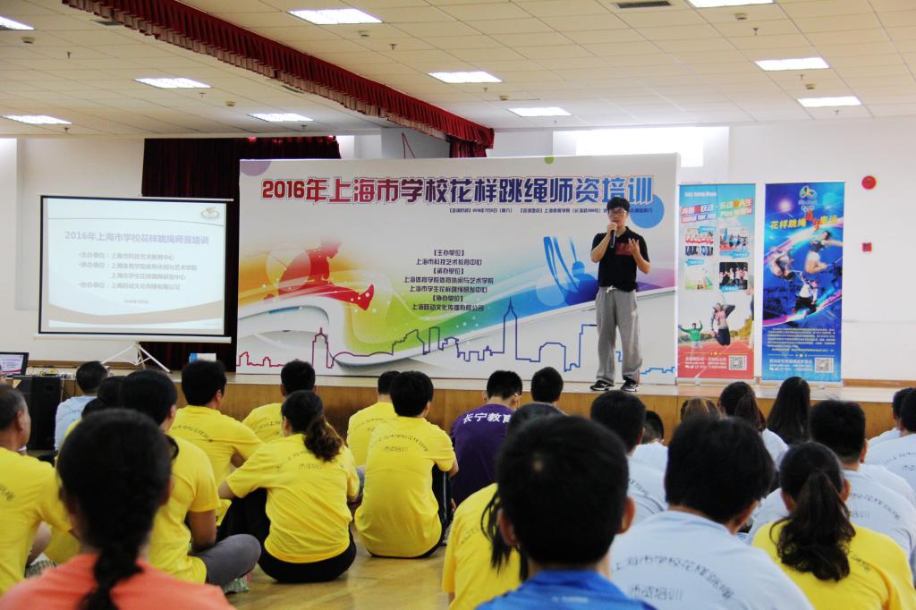 本网讯 7月2日—4日,由上海市科技艺术教育中心主办,上海体育学院体育休闲与艺术学院以及上海市学生花样跳绳研发中心承办的2016年上海市学校花样跳绳师资培训在我校举行。休艺学院党总支书记刘明生、副院长刘树军、副书记副院长王丽娜出席开班仪式,花样跳绳院队教练韩耀刚以及14名院队队员组成教练团队为来自上海市10个区县65家学校的100余名学员带来了精彩的理论与实践课程,顺利圆满的完成了培训任务。
