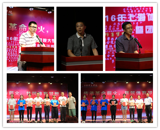 会前播放了视频《青春,梦想,再出发》,视频回顾了我校2015年的暑期社会实践,生动地展示了绿瓦学子的青春记忆和2016年的暑期社会实践活动亮点;优秀实践项目展示的情景剧——《梦想合伙人》,以别样的方式展现了上体人的体育梦、青春梦,愿那梦想的星星之火,撒满上体的校园,将一批批绿瓦学子的梦想点燃、绽放。