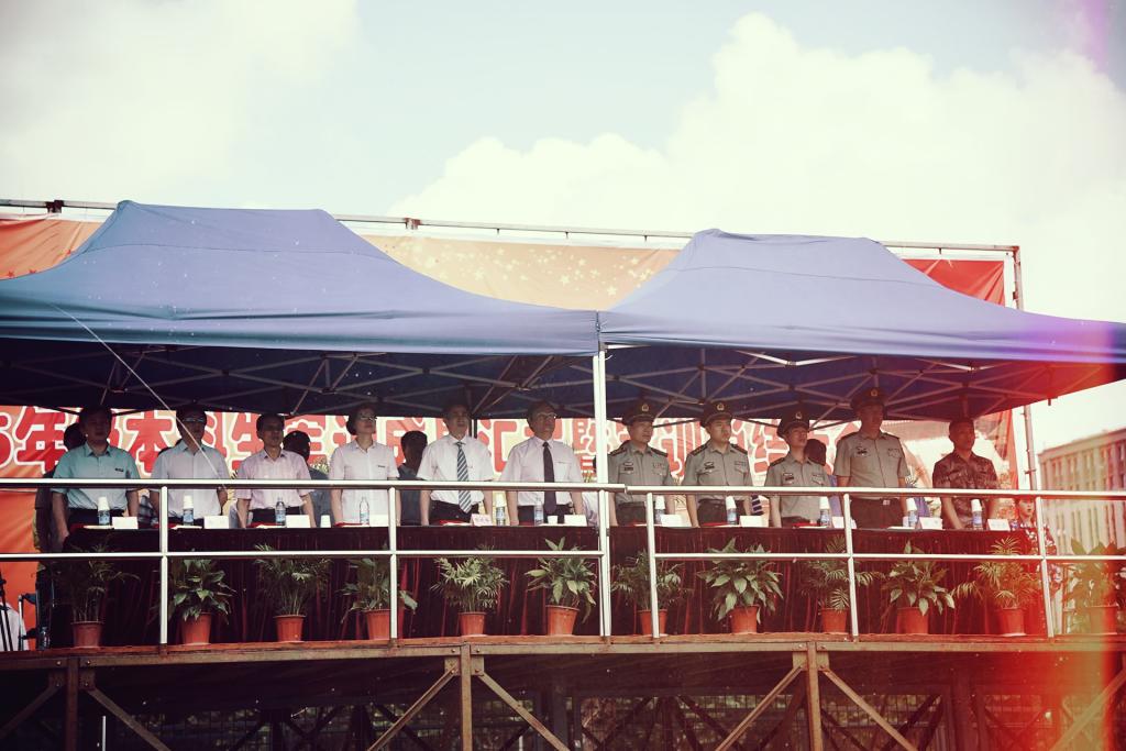 本网讯 7月8日上午九点,我校2015年级本科生军训成果汇报暨军训总结大会在东田径场拉开帷幕。在十四天的军训过后,军训团全体上体学子带着不畏艰险的精神和问鼎苍穹的气势,迈着铿锵有力的步伐,雄赳赳气昂昂,精神抖擞地接受了各方领导的检阅。
