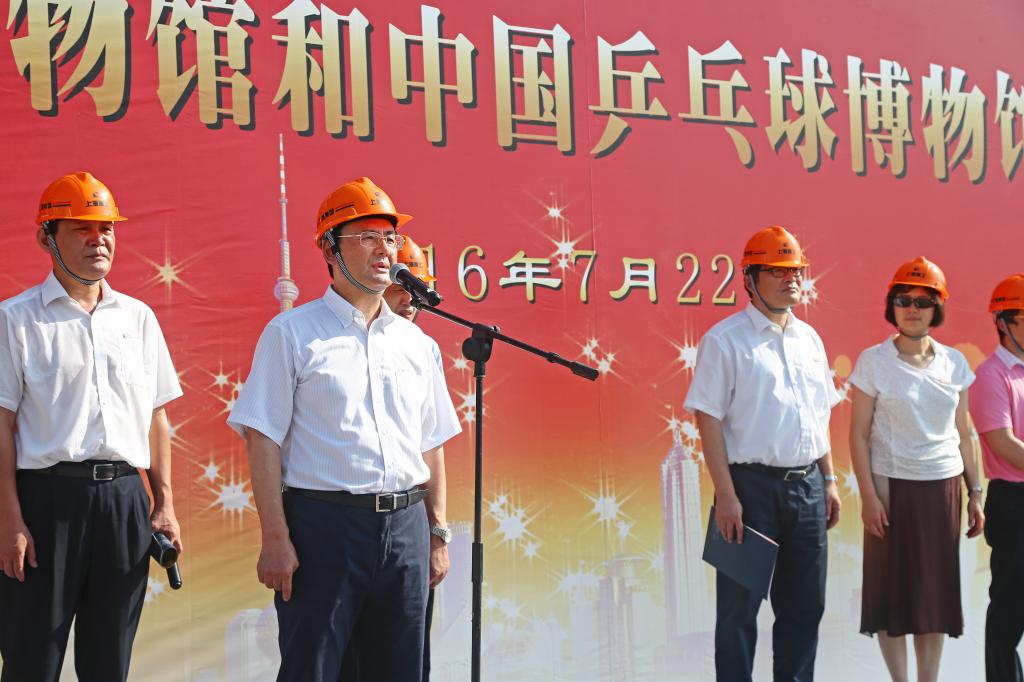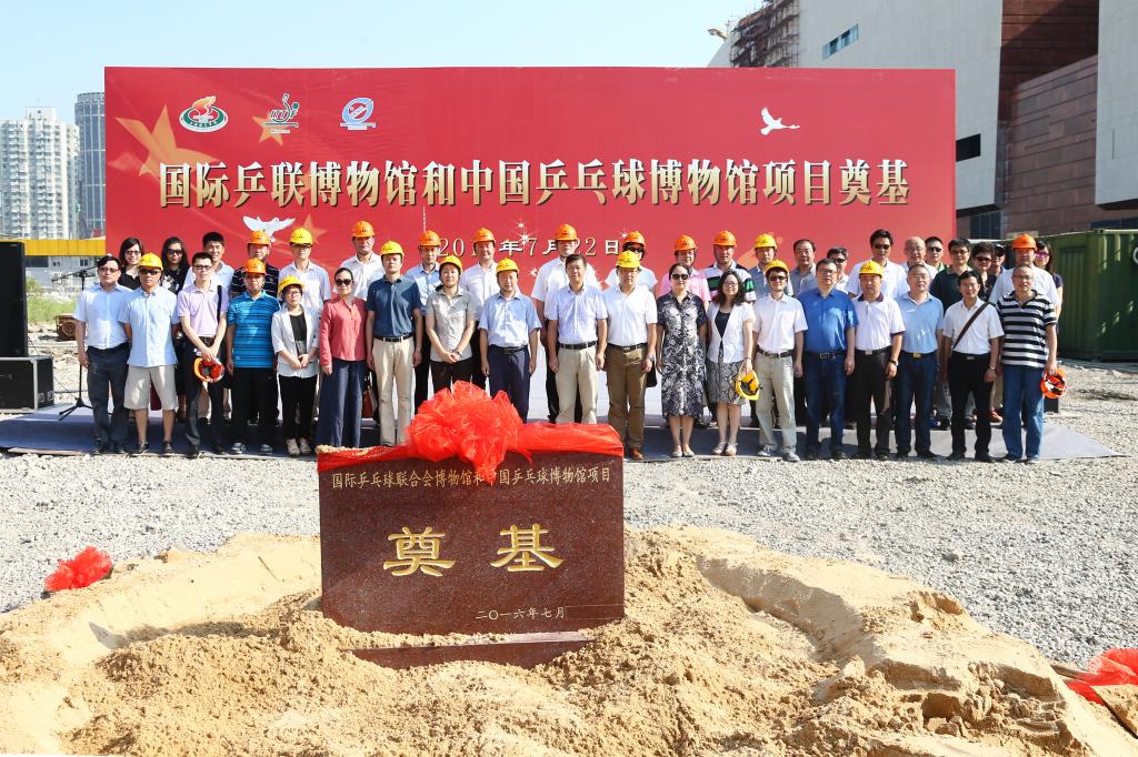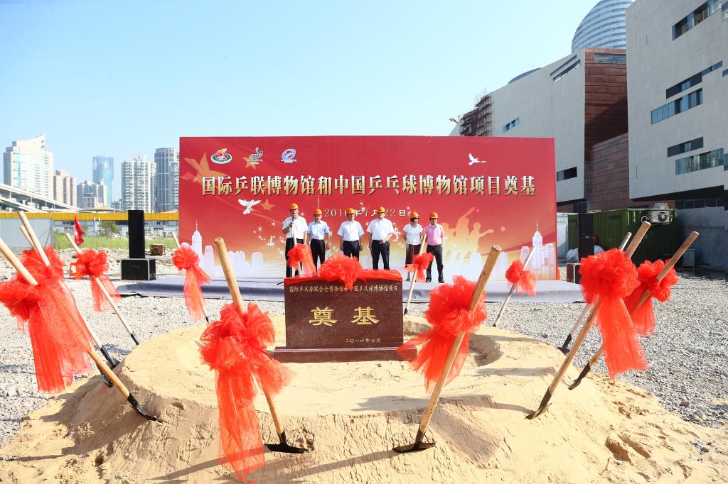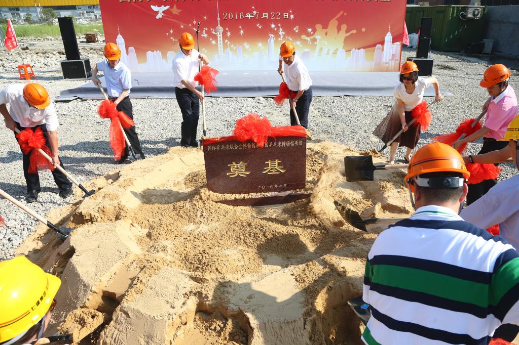 戴健宣布国际乒联博物馆和中国乒乓球博物馆工程项目奠基试桩开始,现场领导共同挥锹为项目工程培土奠基。陈佩杰向到场来宾介绍国际乒联博物馆和中国乒乓球博物馆基本情况。