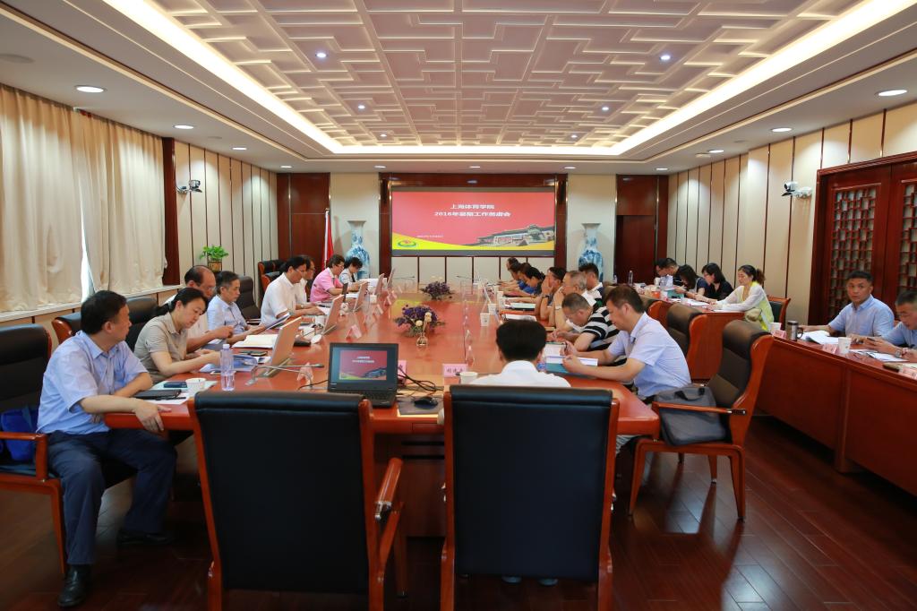本网讯7月22日,上海体育学院2016年暑期工作务虚会在绿瓦大楼第三会议室召开,务虚会的主题为“聚力开局十三五引领发展新常态”。党委书记戴健、院长陈佩杰出席会议并讲话,党委副书记、副院长陈晓峰,党委副书记、纪委书记詹萌,副院长平杰、施之皓出席会议,并围绕相关专题作点评。会议由戴健主持。
