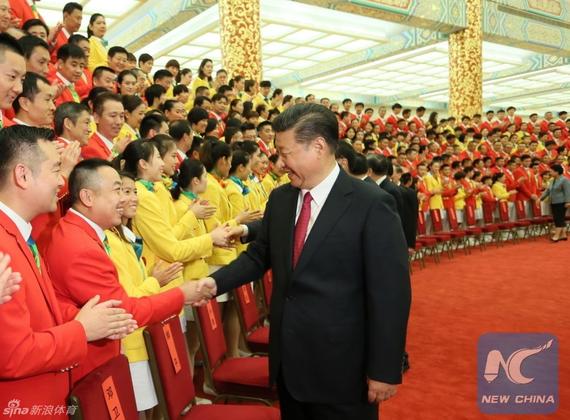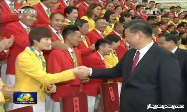 本网讯 8月25日下午党和国家领导人习近平、李克强、张德江、俞正声、刘云山、王岐山、张高丽等七常委在北京人民大会堂会见第31届奥林匹克运动会中国体育代表团全体成员,欢迎我国体育健儿凯旋。习近平总书记代表党中央、国务院向中国体育代表团全体运动员、教练员、工作人员致以诚挚的慰问和热烈的祝贺,向全国体育战线的同志们表示亲切的问候。我校参加本届奥运会的10名运动员都参与集体会见活动。