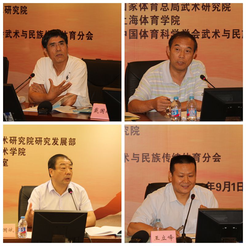 会上,王玉林强调,研制《中国武术蓝皮书》是上体服务国家战略的新举措,是作为中国体育科学学会武术与民族传统体育分会挂靠单位的上海体育学院推进民族传统体育学研究文化自觉的表现。戴国斌对《中国武术蓝皮书》研制工作设想、整体进度和工作要点进行了介绍。邱丕相和虞定海教授认为,作为中国第一本武术蓝皮书具有里程碑意义,既是进一步推进武术运动实践的需要,也是深入开展武术理论研究的需要。王立峰表示,《中国武术蓝皮书》的研制是中国武术历史发展的一件大事,表明中国武术人“构建中国话语体系,服务国家软实力建设,用武术话语讲述中国体育故事”的决心,是一项立意高远具有里程碑意义的重要工作。