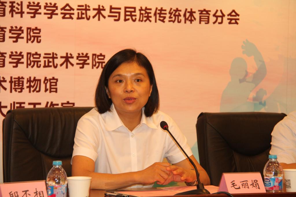 毛丽娟在开幕式上指出,非物质文化遗产是中华文明的瑰宝,是中华文明源远流长的精髓,对形成中华儿女的民族认同和文化认同具有重要的促进作用。同时,非物质文化遗产也是武术发展的契机,在武术界于上世纪八十年代全国范围武术挖整后,国务院于2006年开始已完成四批次国家级非物质文化遗产名录公布,其中武术是其重要组成部分之一,武术也借助非物质文化遗产工作的开展,获得了新发展,并预祝研讨会取得圆满成功。