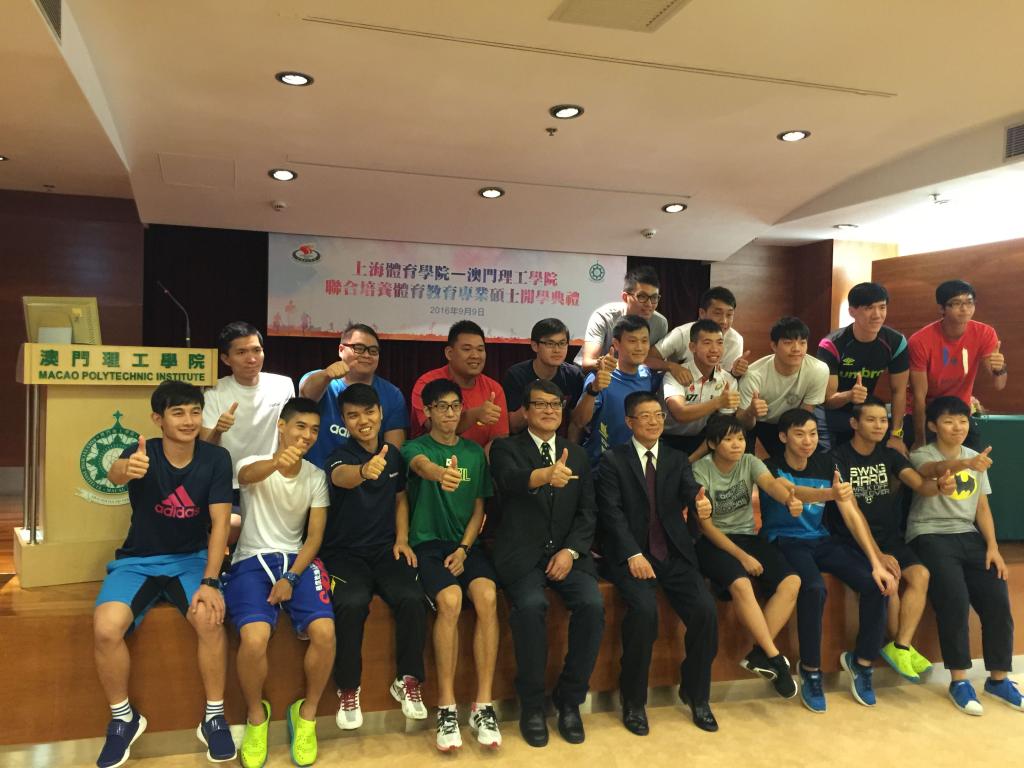 本网讯 9月9日,上海体育学院—澳门理工学院联合培养体育教育专业硕士开学典礼在澳门理工学院举行。上海体育学院院长陈佩杰,澳门理工学院院长李向玉、秘书长陈伟翔、体育暨运动高等学校校长杨再淮,上海体育学院研究生工作部部长殷勤等出席开学典礼。参加开学典礼还有两校教师代表和在澳门招收的首批20位体育硕士生。