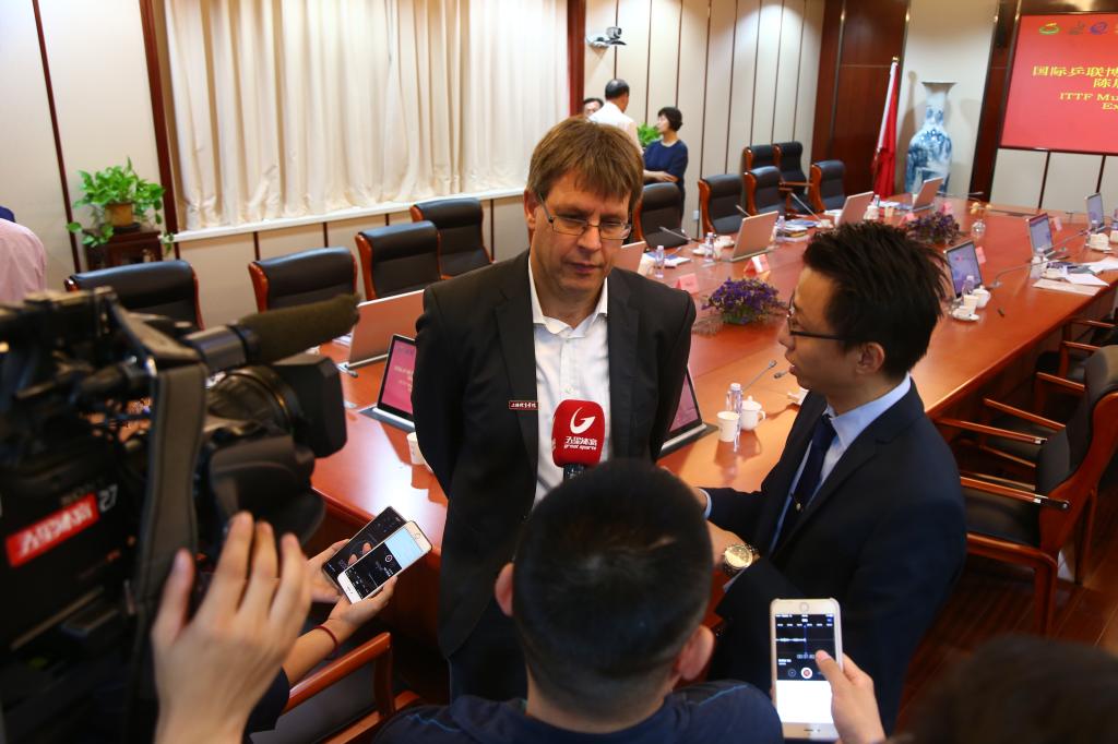本网讯 9月19日,国际乒乓球联合会主席托马斯·维克特先生到访上海体育学院,出席国际乒联博物馆和中国乒乓球博物馆陈展设计方案汇报会议,上海市教委、上海市文广文物局、上海市体育局、上海体育学院等单位领导出席此次会议。