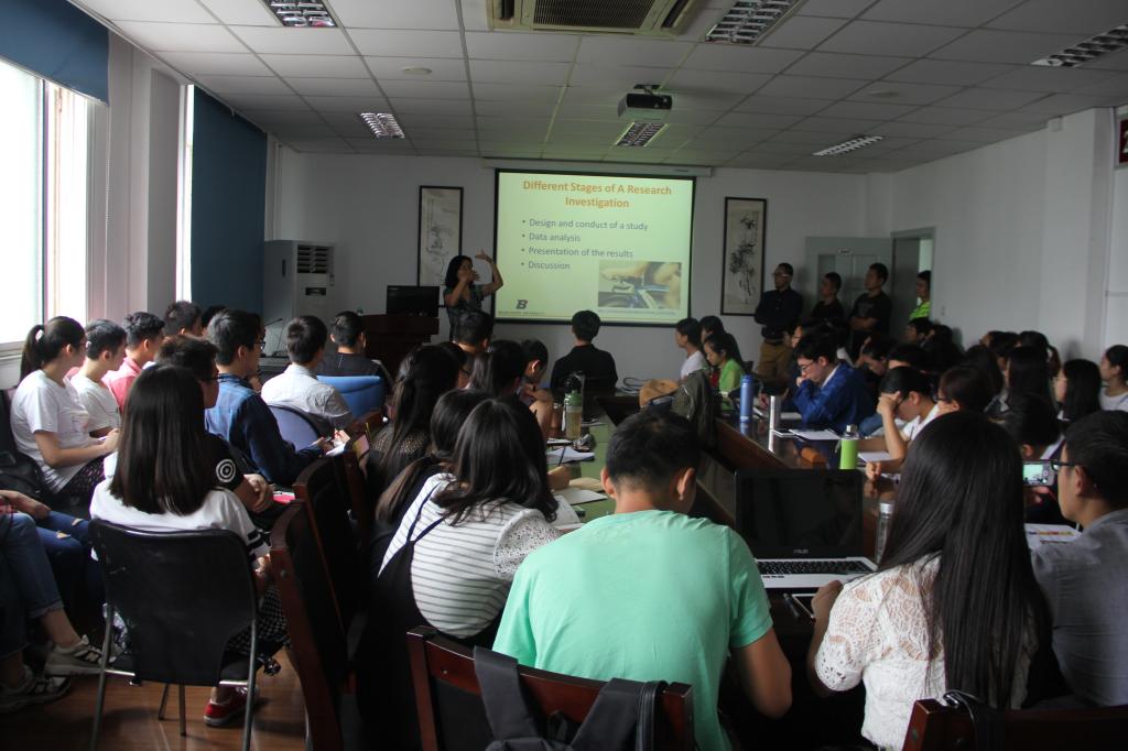 本网讯 2016年9月20日和23日,上海体育学院运动科学学院邀请我校客座教授、校友高勇教授,分别做了两场题为“Measurement and Evaluation: The key for Decision Making”和“Statistical Considerations when conducting research in kinesiology”讲座,与师生共同交流探讨测量与评价在体育科学研究中的作用。讲座分别由运动科学学院庄洁教授和张剑教授主持,相关专业教师和研究生参加了讲座。