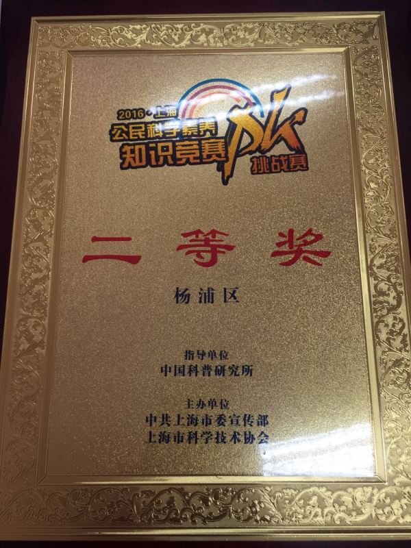 本网讯 2016年上海公民科学素养知识竞赛挑战赛于9月初拉开帷幕,并于9月18日在上海展览中心举办了决赛,我校中国武术博物馆讲解员李小华和杨刚代表杨浦区参与角逐本次名次,并最终获得本次比赛的二等奖。