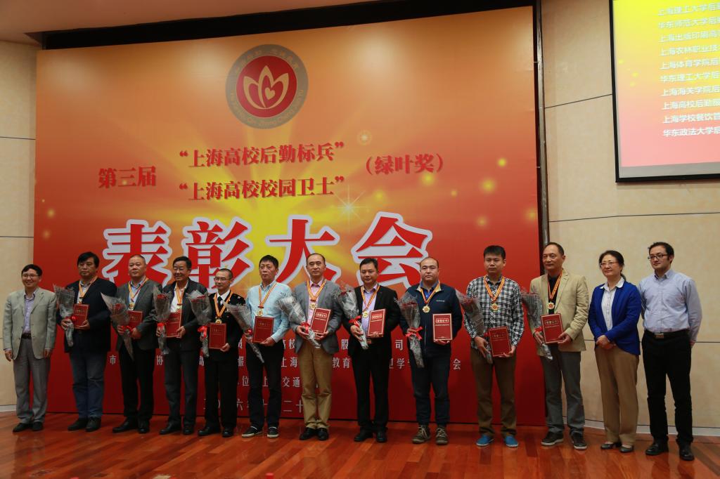 本网讯 第三届“上海高校后勤标兵”、“上海高校校园卫士”绿叶奖表彰大会于2016年10月27日下午在上海交通大学闵行校区隆重举行,我院后勤服务中心餐饮部经理沈建明荣获“上海高校后勤标兵”(绿叶奖)荣誉称号。