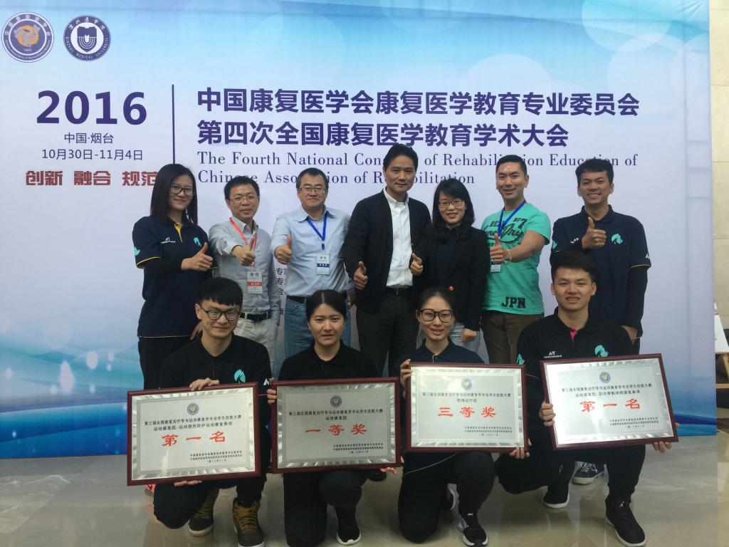 本网讯 10月31日,在丹桂飘香的山东烟台,第三届“蝶和杯”全国康复治疗学与运动康复学专业学生技能大赛于滨州医学院展开激烈角逐,上海体育学院运动科学学院两支代表队六名队员分别在运动康复和物理治疗参赛组取得一等奖和三等奖的骄人成绩,并在运动康复组运动损伤防护和肌肉骨骼病损康复单项摘得桂冠。这是继由陈佩杰教授率领的团队成果《结合国家重大需求:建立运动康复专业康复复合型人才培养模式》获2014年国家教学成果一等奖,并于同年运动康复专业获批为“上海市直属高校应用型本科试点专业建设项目以来,对运科培养的应用型运动康复治疗高层次人才最好的验收。