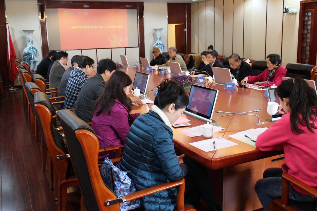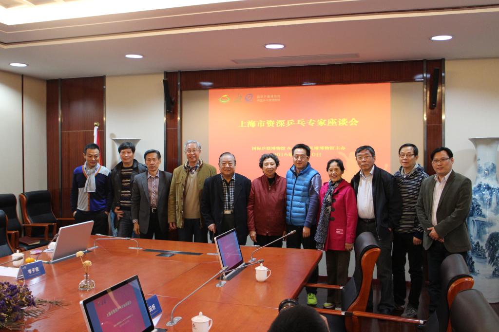本网讯 2016年11月10日,上海市资深乒乓专家座谈会在绿瓦大楼第一会议室召开。上海体育学院党委副书记王玉林,国际乒联副主席、上海体育学院副院长、中国乒乓球学院院长施之皓,以及50年代国家队员、上海队著名教练员、中国乒乓球运动贡献奖获得者杨瑞华,国际裁判、中国乒乓球运动贡献奖获得者顾寇凤,中国乒乓球运动贡献奖获得者、上海市巨鹿路一小特级教师柯元忻,上海市体育宫体校乒乓球教练员、世界冠军启蒙教练朱俪英,华东理工大学教授、乒乓球援外专家、中国大学生乒协参建成员陆名通,上海社会科学院研究员、中国智库资深专家金大陆,备战26届世乒赛108将成员、上海队教练员,中国乒乓球运动贡献奖获得者薛伟初之女薛文耀七位上海资深乒乓专家和乒博馆的全体员工参加了此次座谈会。