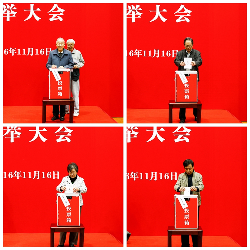 校领导戴健、陈佩杰、陈晓峰、詹萌、王玉林、平杰、施之皓、毛丽娟、王兴放和老领导马如棠、胡爱本、俞继英、庄起民、陆铭三等同志出席选举大会并投票。