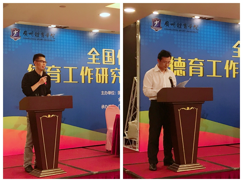 我校学工部部长熊小健和武术学院党总支书记霍圣录分别代表年会“学工组”、“总支书记组”作大会交流发言。熊小健围绕创新创业教育,向大会介绍了各院校在“大众创业,万众创新”时代背景下,开展的创新创业教育与德育教育工作的有机结合;霍圣录就落实全面从严治党的精神,介绍了各院校基层党组织结合特色而开展的基层党建工作。