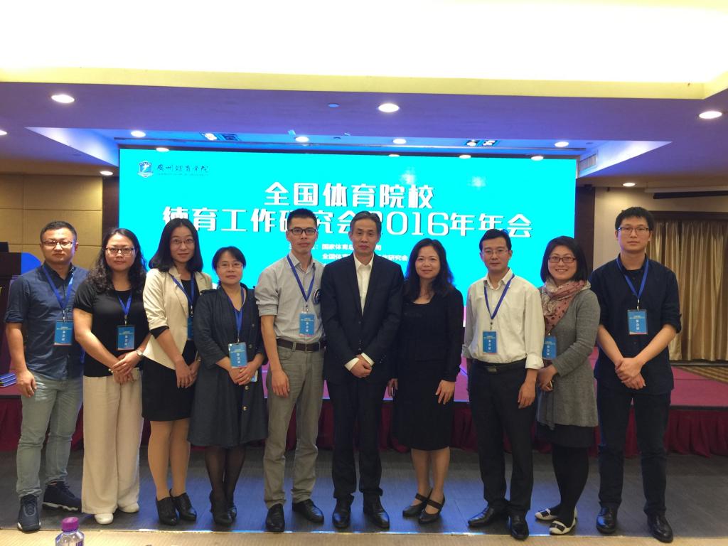 本网讯 为积极探索新时期德育工作的实践方略,全面推动中国体育高等教育事业发展,11月19日-20日,全国体育院校德育工作研究会2016年年会在广州体育学院召开,国家体育总局科教司教育处处长隆胜军及全国十五所体育院校的分管校领导出席年会。我校党委副书记、副院长陈晓峰,宣传部部长匡淑平,学工部部长熊小健,研工部部长殷勤,武术学院党总支书记霍圣录,休艺学院党总支副书记王丽娜及团委陈鸿、辅导员严芳、赵文越、张玮玮一同参与了本次年会。