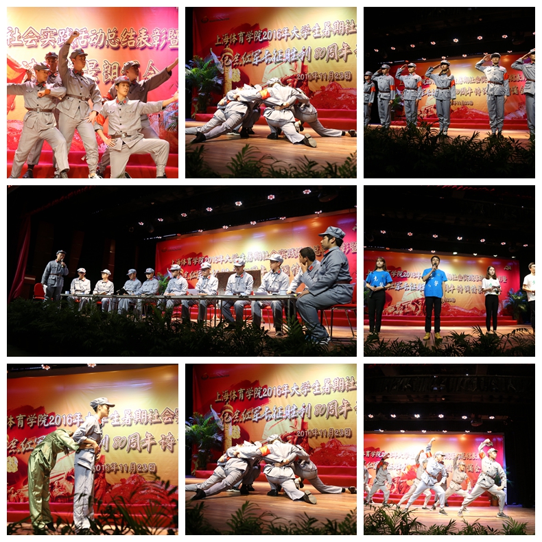 本网讯11月23日下午,我校2016年大学生暑期社会实践活动总结表彰暨纪念红军长征胜利80周年诗词情景朗诵会在活动中心小剧场举行,党委副书记、副院长陈晓峰,副院长平杰出席活动。组织部、宣传部、教务处、武保处、退管会、学工部、研工部、团委等职能部门负责人,各党总支副书记,各团总支书记、辅导员、教师代表、学生代表等出席大会。活动由团委副书记陈鸿主持。