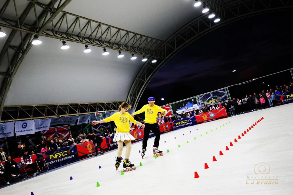 本网讯 12月3日至4日,2016年首届全国大学生自由式轮滑锦标赛在上海体育学院风雨篮球场举行。本次赛事由中国大学生体育协会、中国轮滑协会主办,上海体育学院体育休闲与艺术学院、上海市轮滑运动协会、圣巴(上海)文化传播有限公司承办。