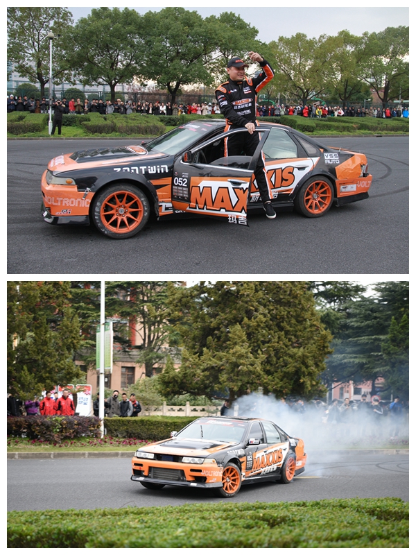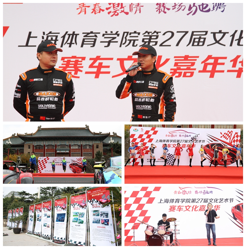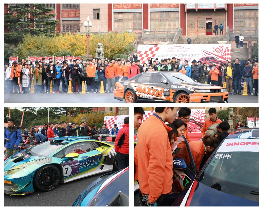 此次赛车嘉年华活动,由我校与上海力盛赛车文化股份有限公司合作,来自天马赛车场的八部赛车“开进”校园,其中包括韩寒的“爱车”及大众333车队、斐讯车队、星之路车队、北京现代纵横车队、天马DRS飘移车队等专业赛车,吸引了全校师生的关注。一个又一个高难度的漂移动作,引擎轰鸣声,互动环节的飘移体验更是让幸运的同学上车零距离地感受到了赛车的非凡魅力。“车与人同行”,赛车嘉年华带来的是碧空下跃动的青春,是朝阳般的体育精神。