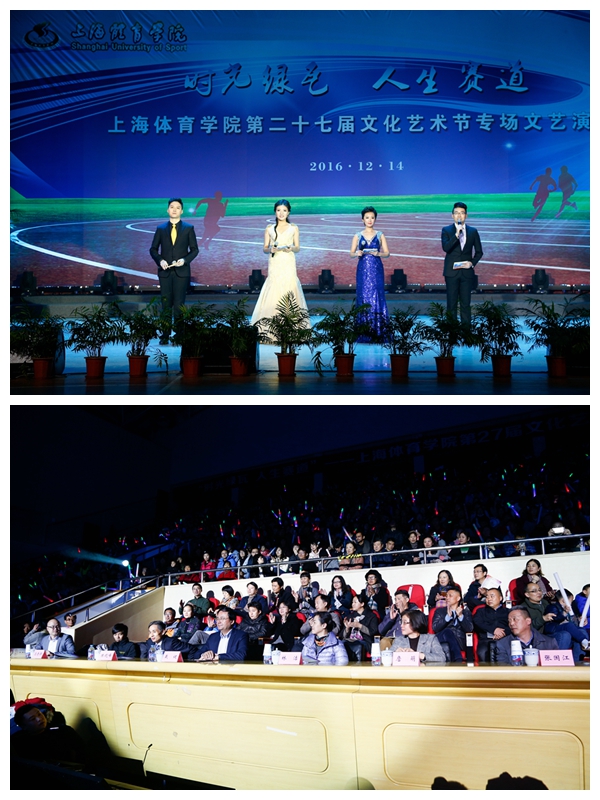 本网讯 12月14日19:00,“时光绿瓦 人生赛道”上海体育学院第二十七届文化艺术节专场演出在我校综合馆隆重举行。国家体育总局汽车摩托车运动管理中心副主任、中国汽车摩托车运动联合会副主席林洁,上海体育学院党委书记戴健,党委副书记、副院长陈晓峰,党委副书记、纪委书记詹萌出席活动,中国首位F1车手马青骅,上海力盛赛车文化股份有限公司副总经理张国江等嘉宾受邀出席本次演出,学校各职能部门负责人、二级学院党政领导、教职工及学生观众共同观看了本次演出。