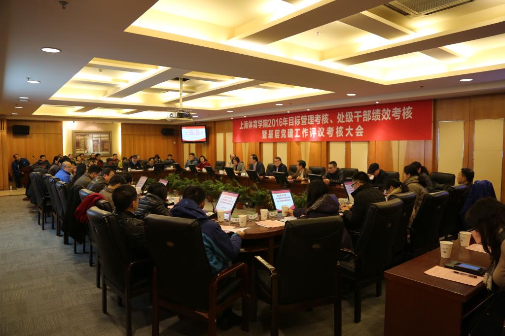本网讯 12月30日,我校召开2016年目标管理考核、处级干部绩效考核暨基层党建工作评议考核大会,全体校领导、中层干部和民主党派代表80余人参加会议。会议由党委书记戴健主持。