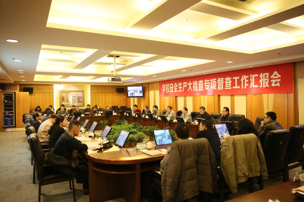 检查组一行首先听取了我校关于安全生产工作的汇报。陈佩杰代表学校介绍了我院在深入贯彻落实党中央、国务院和教育部关于安全生产工作要求的落实情况,阐述了我院近年来所取得的成绩。陈晓峰从四个方面对我院安全生产工作进行汇报:一是加强领导,提高认识,完善制度,落实责任;二是抓牢常规,突出重点,全面做好学校安全稳定工作;三是特色工作;四是面临挑战与努力方向,希望检查组对我院安全生产工作提出宝贵意见和建议,通过这次检查进一步完善安全生产工作。