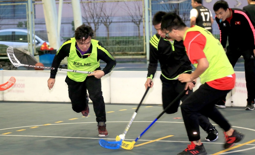 开班仪式后,学员们随即进入旱地冰球的理论课程部分,通过讲师的讲解,学员了解到旱地冰球的历史由来、项目特色、国内外的发展情况等。本次培训班注重理论结合实践,在旱地冰球基本技术的培训过程中,通过演示及练习,学员轻松掌握了旱地冰球的动作要领。在培训中还开展了对练比赛,使得学员们能够将所学到的基本技术运用起来,通过比赛提升个人技术。参加本次培训的学员来自上海市及其它地区各高校、中小学体育教师、旱地冰球爱好者共20余人。