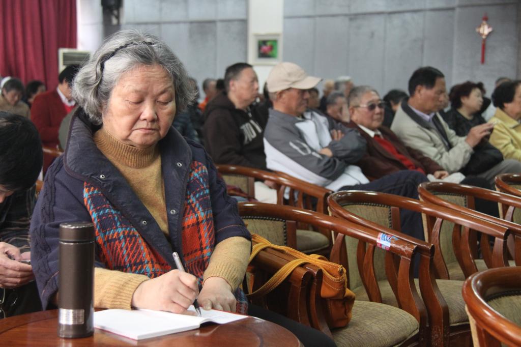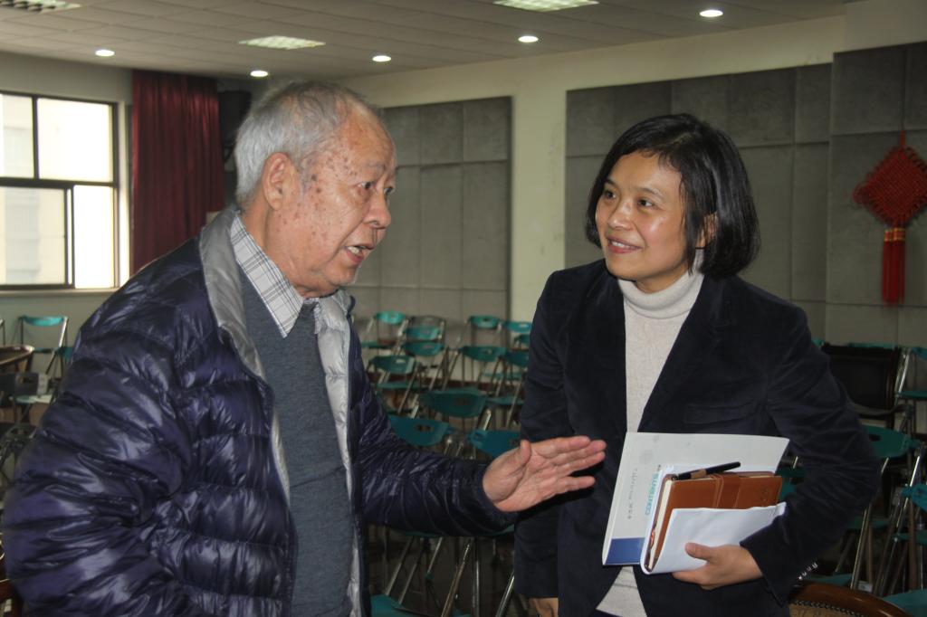 通报会持续了一个半小时,老同志为学校取得的成绩而高兴和自豪!尽管下着淅淅沥沥的小雨,但老同志关心关注学校发展的热情不减。有拄着拐杖白发苍苍的老者,有不少从浦东、市中心等地方很早就赶到学校的老同志,大家齐聚一堂,认真聆听。与会的老同志深深的爱校情结使他们久久不愿离去。毛丽娟副院长尽管身体不适,通报会结束后还走下主席台,和耄耋之年的老同志握手,感谢他们一直关心学校,并回答了他们的提问。
