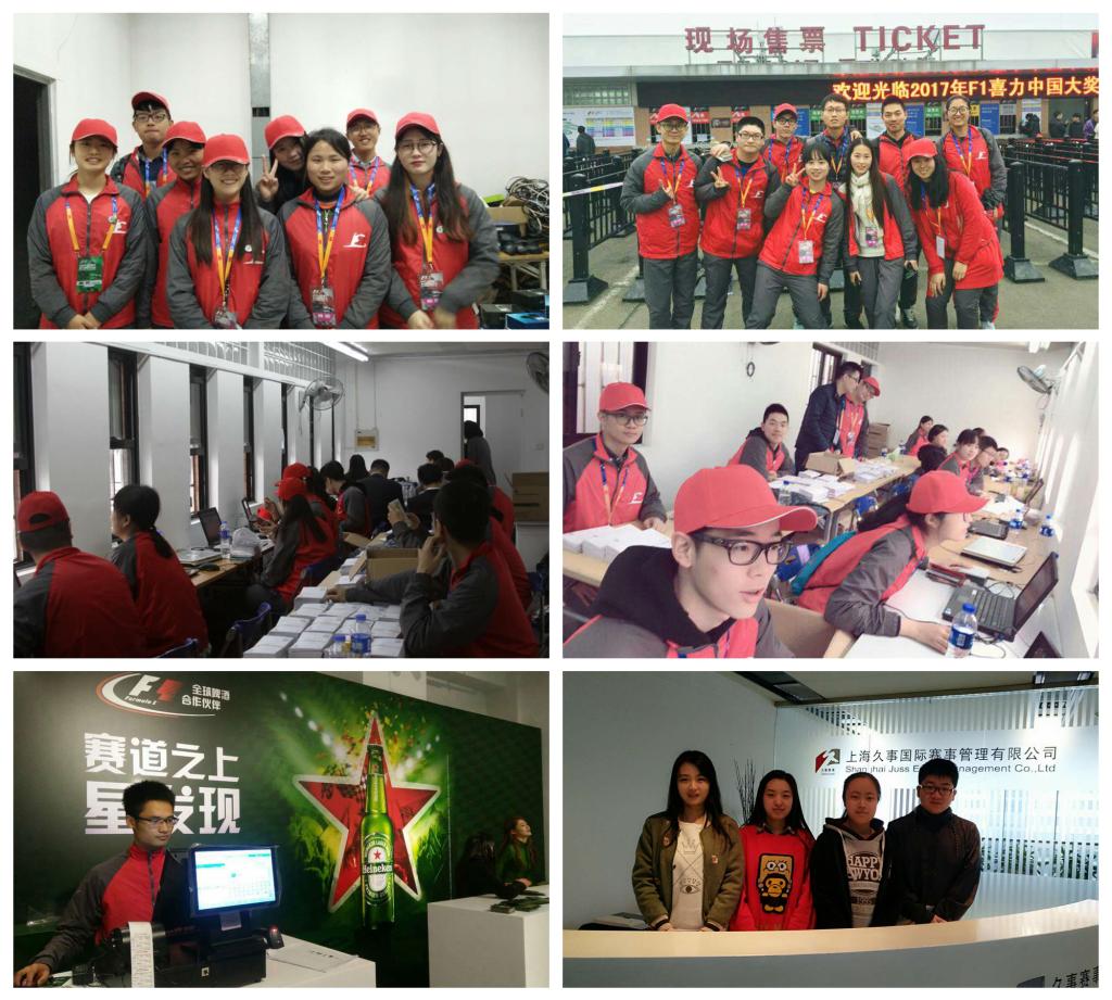 在本次F1中国大奖赛中,我校派出47位志愿者,分别负责票务预售,票务推广,技术处理,增值服务,检票,取票等。另有几位志愿者在外滩负责纪念品销售,以及在久事大厦进行咨询热线的服务。在为期三天的比赛中,“小火炬”志愿者们每天早早的乘车,来到所被分配到的岗位,为每一位观众耐心的解答疑问,处理困难。虽然有的事情非常枯燥,但志愿者们依旧饱含着热情去完成,力求给每一位前来观看比赛的观众都有一份优质的观赛体验。在这次比赛的商贸区和看台区随处都可以看见“小火炬”的身影。志愿者们积极配合着主办方开展各项服务。伴着激情的赛车轰鸣声,志愿者也体现了他们的速度与热情。
