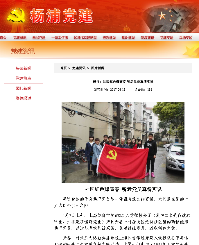 体育休闲与艺术学院学员冒雨前往开鲁一村社区,寻访社区里两位优秀老党员:王秀英和王民华。老党员重心长地告诉年轻的大学生,她们当时入党的初衷就是要好好工作、为人民服务,做一个对国家有用的人,入党不是为自己,而是为了更好地奉献自己,作为一名党员,需要坚定信念,永远跟着党走,贯彻党的方针政策,充分发挥党员的先进性,对于有困惑有困难的群众要及时进行沟通并给以帮助,用党的精神感染群众,用具体行动去温暖大家。老党员还回忆了自己的入党经历,鼓励青年人要不断端正入党动机,抱着追求上进的政治热情加入党的组织。