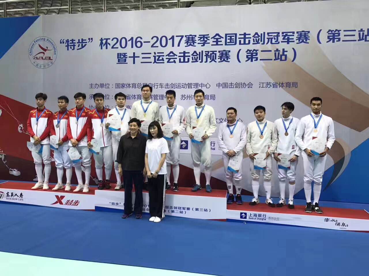本网讯 “特步”杯2016-2017赛季全国击剑冠军赛(第三站)暨十三届全运会击剑预赛第二站比赛4月16日-23日在苏州举行。上海队夺得男子重剑团体冠军,我校学生孙东东作为主力队员出战。